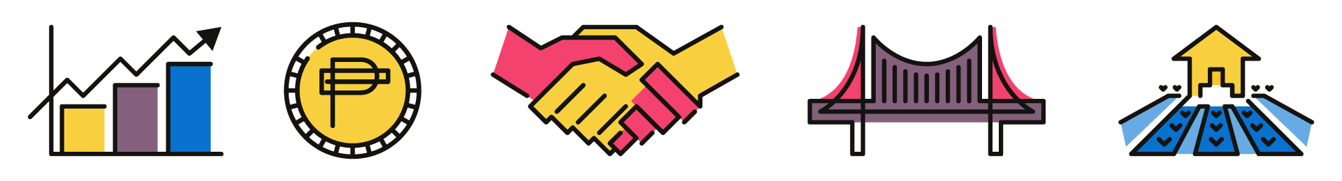 Icons created for each priority in the 10-point socioeconomic agenda from the Office of the President, with the help of the Department of Finance in its communication efforts. In the agenda, implementation of the first two points (macroeconomic policies and tax reform) are crucial in order to achieve the other eight points.